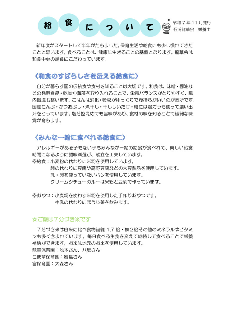 園長、主任保育士、保育士、看護師、調理員、運転手 |
