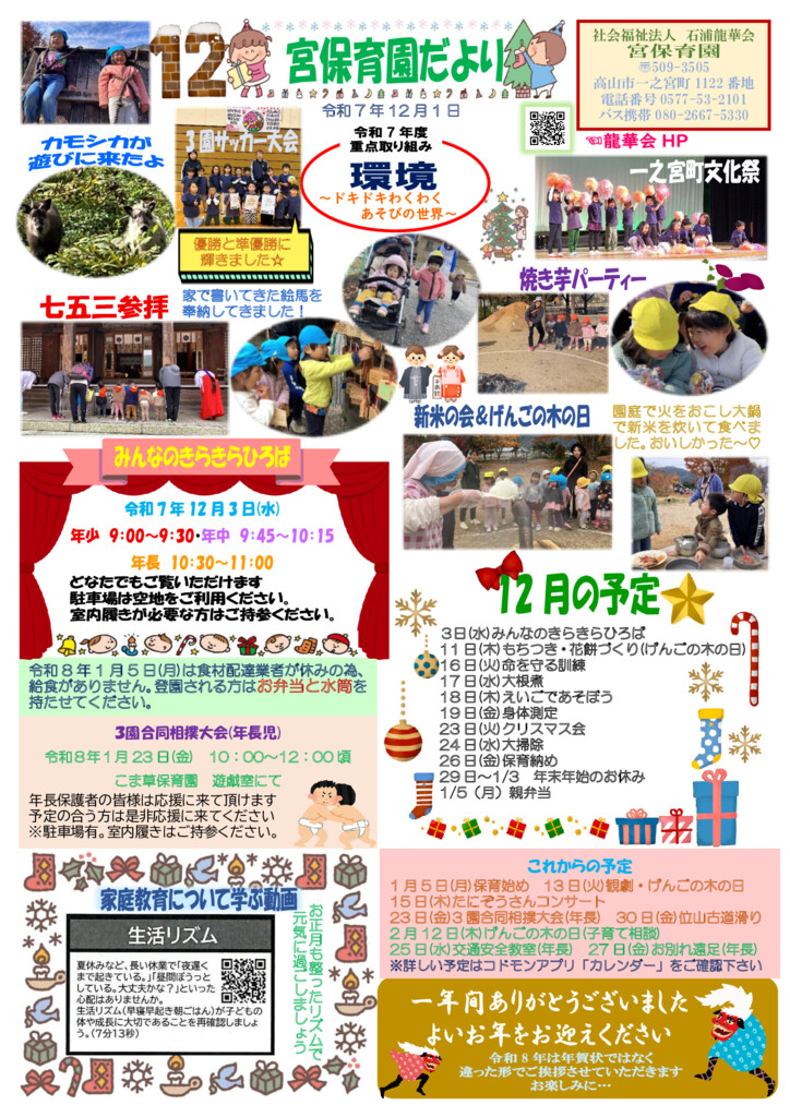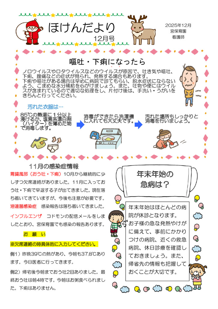 午前7時から午後7時まで延長して保育を行っています。 延長のための保育料金は必要ありません。(土曜日可)