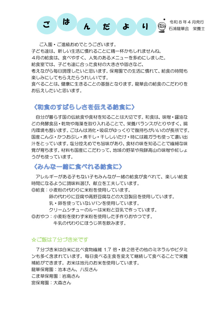 園長、主任保育士、保育士、看護師、調理員、運転手 |