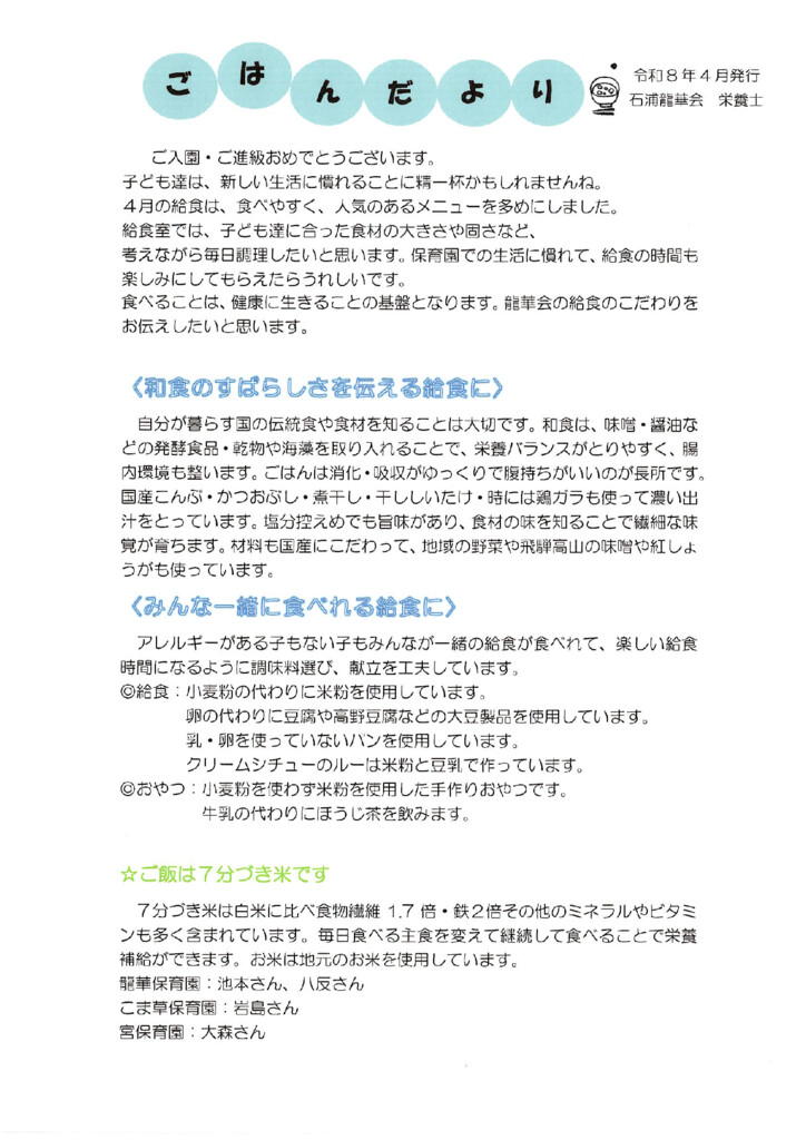 園長、主任保育士、保育士、看護師、栄養士、調理員、運転手 |