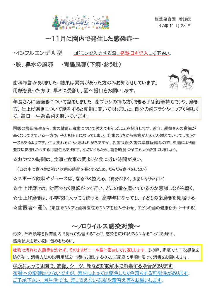 午前7時から午後7時まで延長して保育を行っています。 延長のための保育料金は必要ありません。(土曜日可)